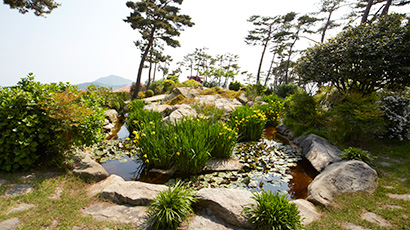 한려해상국립공원을 배경으로 펼쳐진 너른 잔디밭